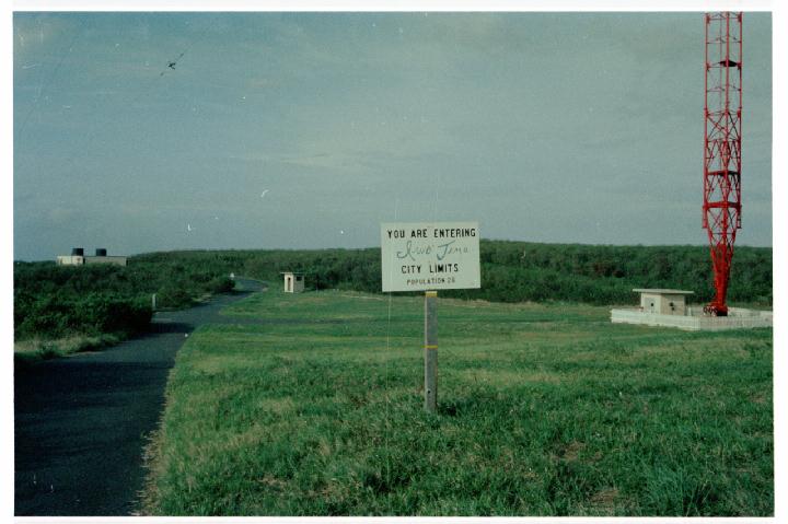 | Iwo Jima City limits, population 28. The base of the 1350 foot antenna tower is on the right. |