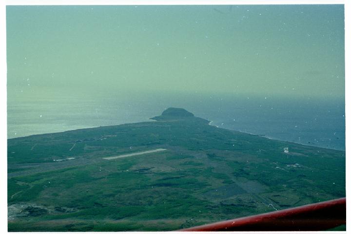 | A view of Mount Suribachi from the top of the 1350 foot transmitting antenna tower (climbed by me). |