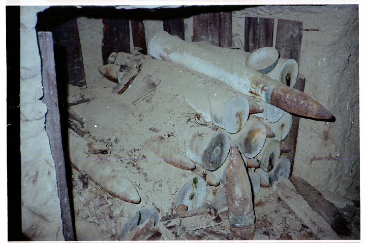 Live munitions in a cave under an old runway.