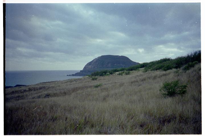 Looking alon invasion beach to Mount Suribachi.
