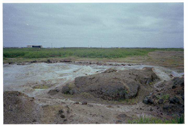 A volcanic vent with the Japanese base behind.