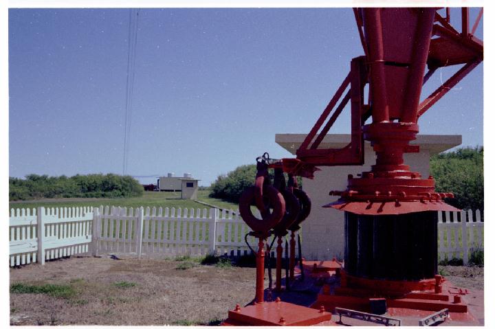Antenna base with the transmitter building behind.