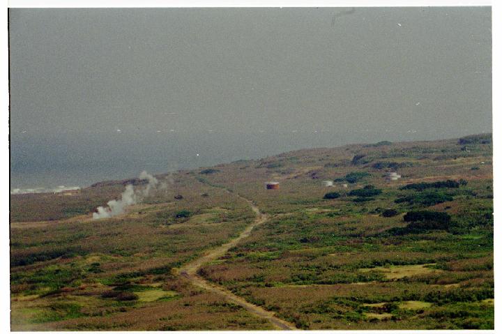 | Looking down the west side of the island from the top of Mount Suribachi. |